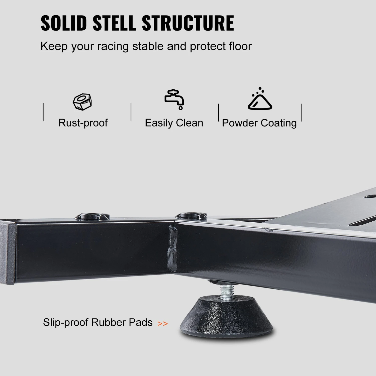 Der VEVOR-Rennlenkradständer ist aus hochfestem Kohlenstoffstahl gefertigt. Daher hält dieser Lenkradständer intensiver Nutzung über einen langen Zeitraum stand. Sein strapazierfähiges Material sorgt außerdem für maximale Stabilität und Robustheit, was ihn bei Wettkämpfen zuverlässig macht. Außerdem ist dieser Lenkradständer mit vier rutschfesten Gummipolstern ausgestattet.
