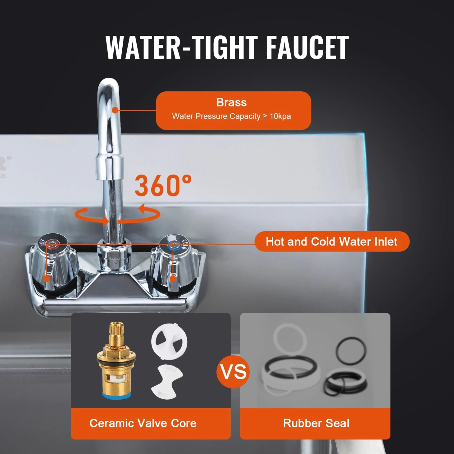 VEVOR Kommerzielles Handwaschbecken Mit Wasserhahn, Edelstahlwaschbecken,Kleines Handwaschbecken, Wandmontage Handwaschbecken, Waschbecken Für Restaurant, Küche, Bar, Garage Und Haus