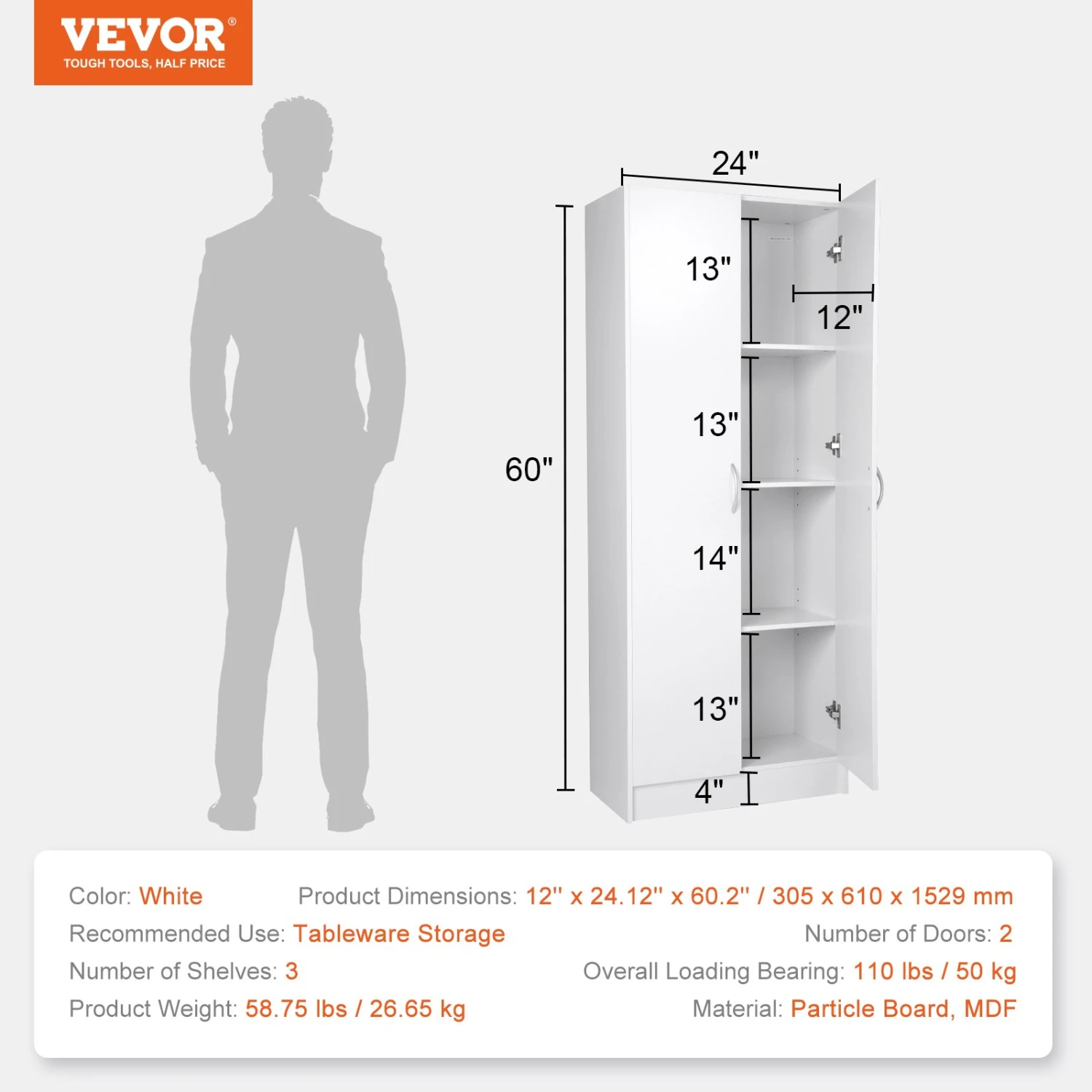 Der Küchen-Pantry-Schrank von VEVOR ist die ultimative Lösung zur Erweiterung Ihres Küchenstauraums. Mit seiner beeindruckenden Tragfähigkeit von 110 Pfund, der geräumigen Größe von 12 x 24 x 60 Zoll und dem vielseitigen Design mit zwei Türen und drei Einlegeböden (2 verstellbar) bietet dieser Aufbewahrungsschrank mühelos Platz für eine Vielzahl von Geschirr.