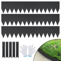 Sie erhalten 3 Stück Landschaftsrasenkanten, 5 Befestigungsclips und ein Paar Montagehandschuhe. Jeder Zaun misst 1 m x 20 cm und der verlängerte Erdspieß erleichtert die Befestigung im Boden.