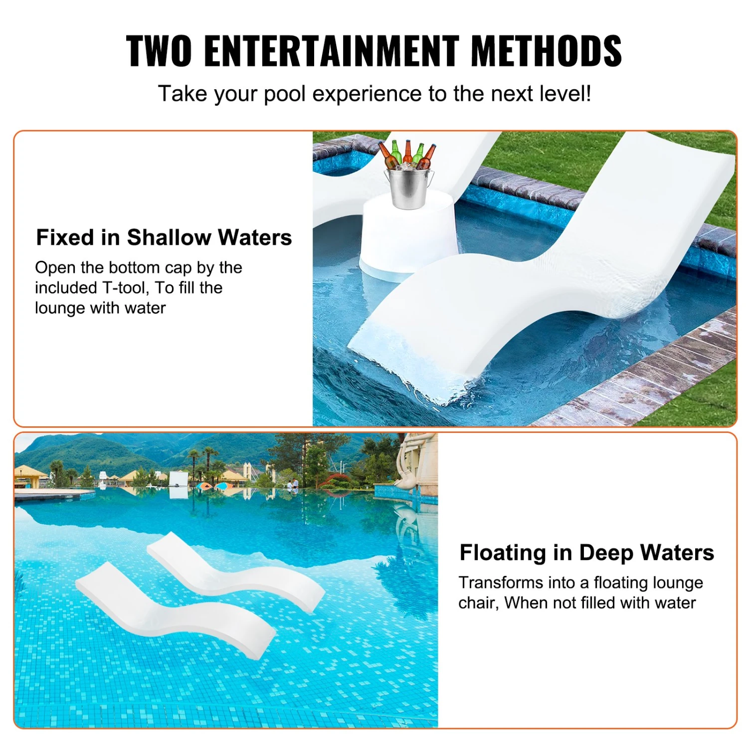 VEVOR Sonnenliege Loungesitze, 2 Stk. Chaiselongues, Innenpool- Und Sonnenregal-Loungesessel 1780 X 580 X 560 Mm, 200 Kg Tragfähigkeit Pool-Liegestühle Aus PE Weiß, Bäderliege Pool Sonnenliege