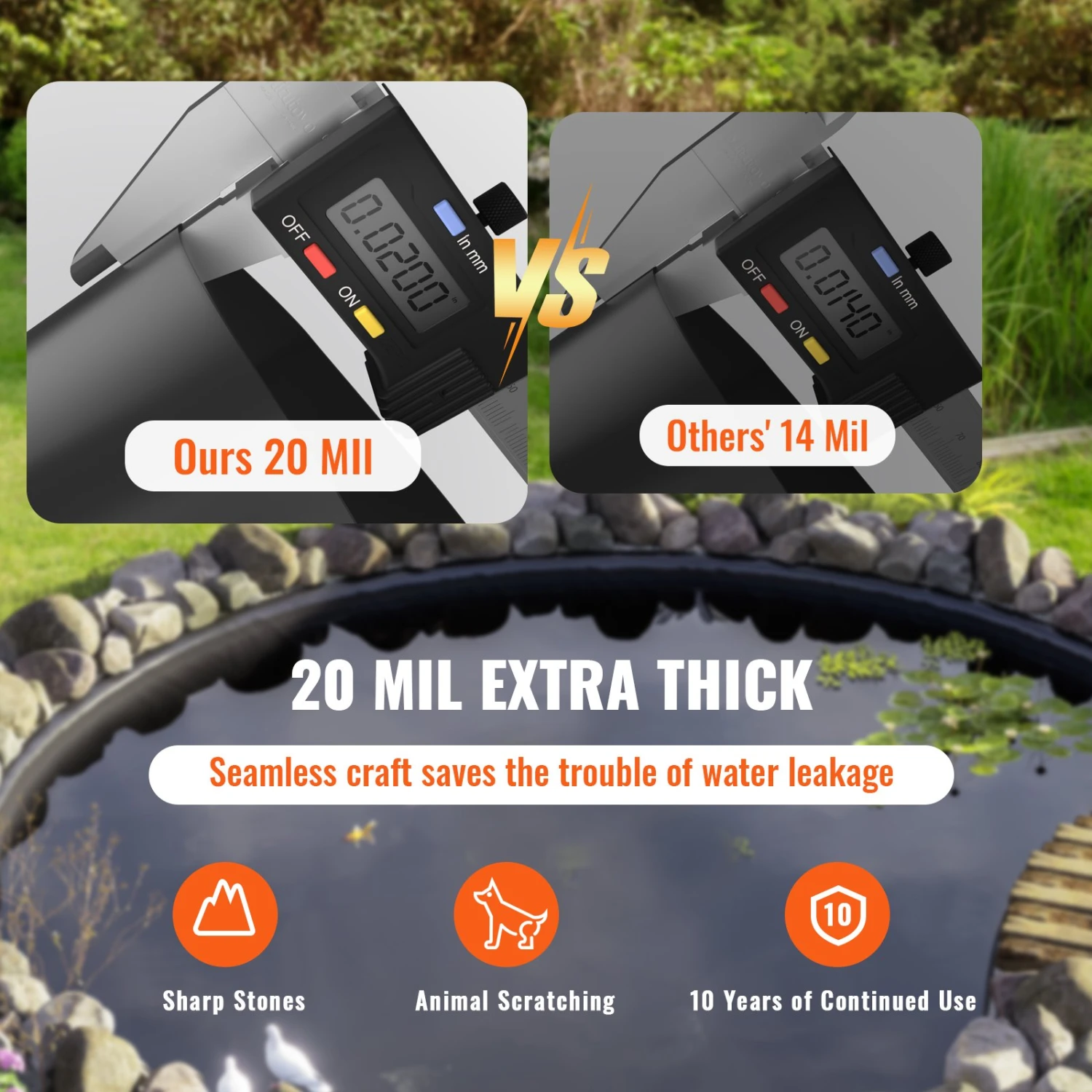 Um zu verhindern, dass Ihr Teich über Nacht Wasser verliert, ist es wichtig, eine Barriere zwischen Wasser und Boden zu haben. Mit den 20Mil-Teichhäuten von VEVOR können Sie verhindern, dass Wasser aus dem Boden Ihres Teichs austritt.
