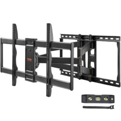 Unsere TV-Wandhalterung besteht aus einer robusten Metallhalterung aus Karbonstahl, die für Stabilität sorgt und bis zu 74,84 kg tragen kann, ohne zu wackeln.